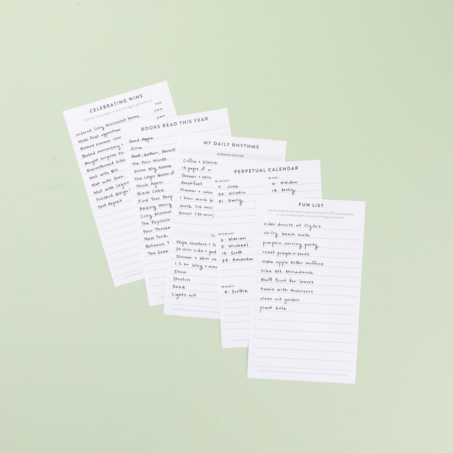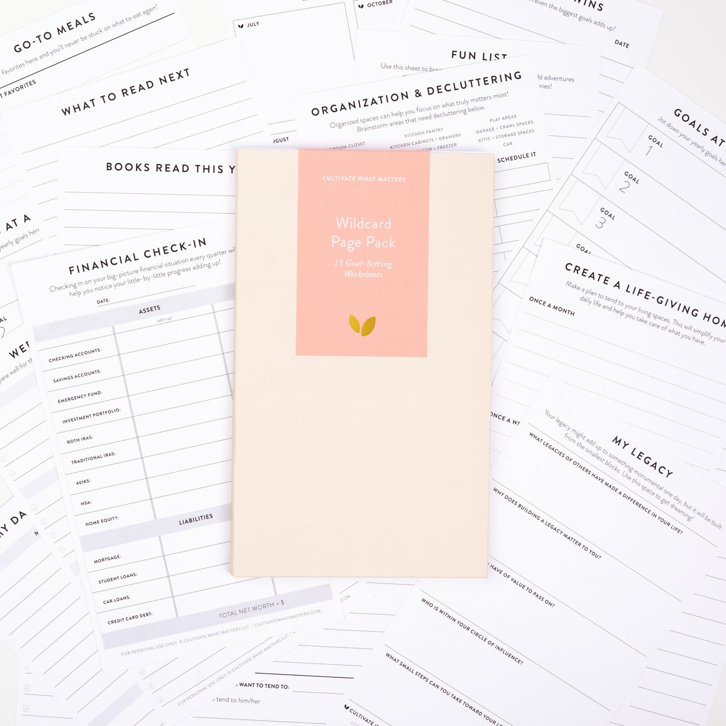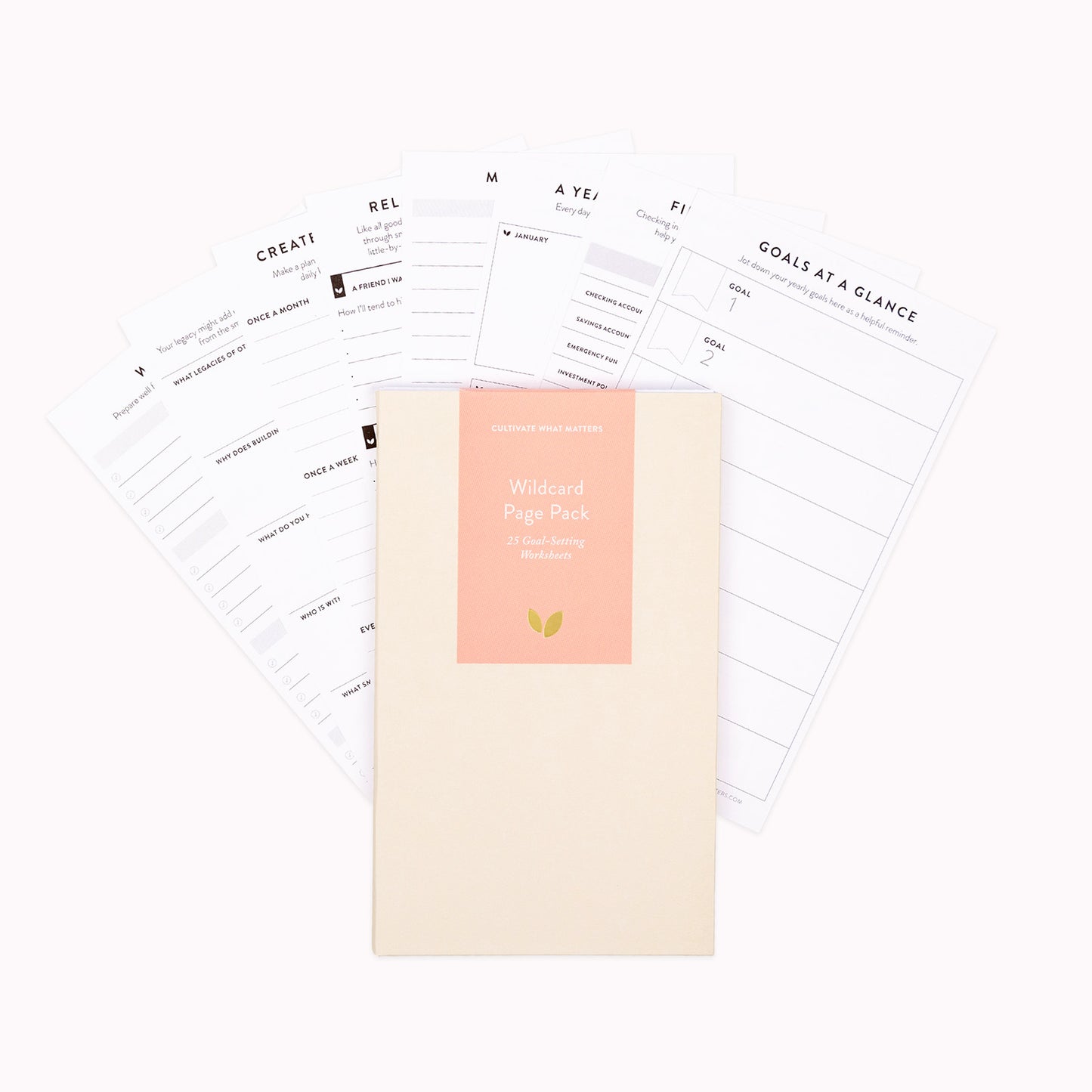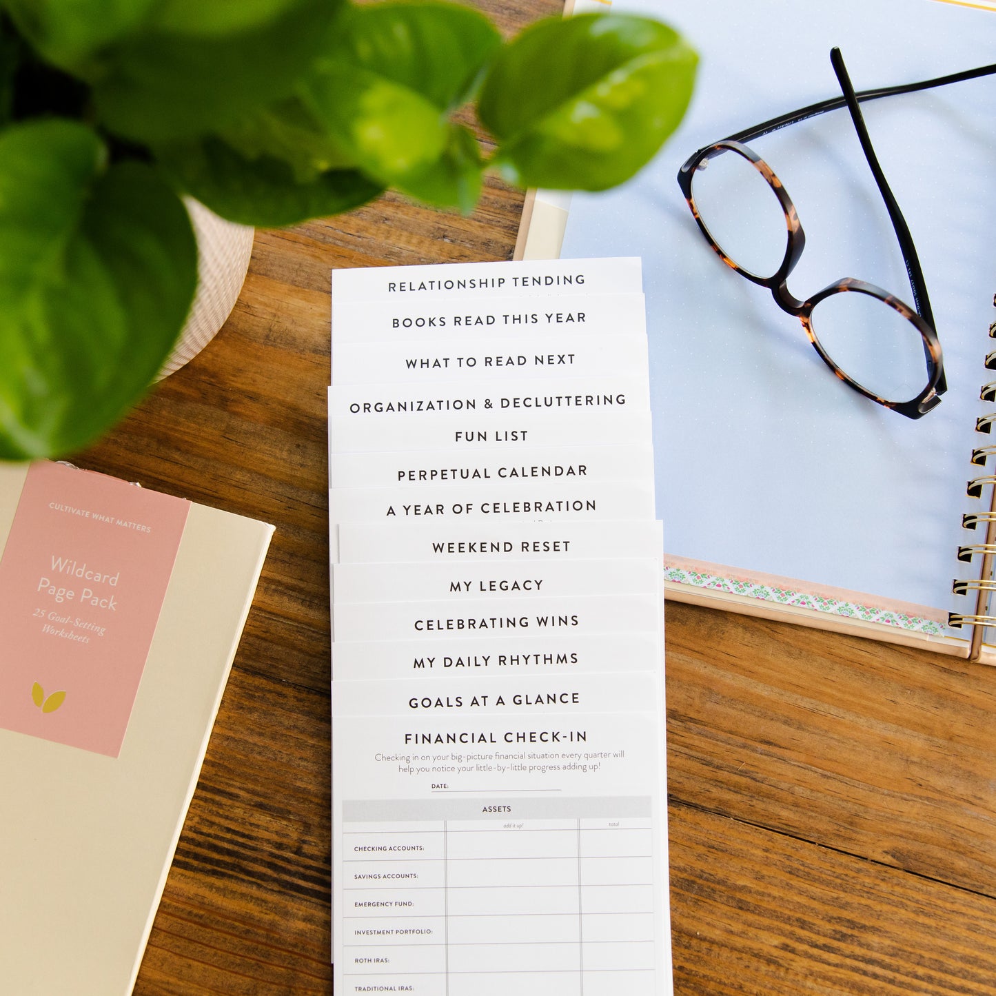 When you use Wildcards, you are in total control of your goal-setting journey! Create a customized experience inside your PowerSheets® with pages that speak directly to your season in life. From organization and decluttering to book lists, financial check-ins, and fun lists, the Wildcard Page Pack is full of meaningful worksheets to help you make progress on your unique goals right away.