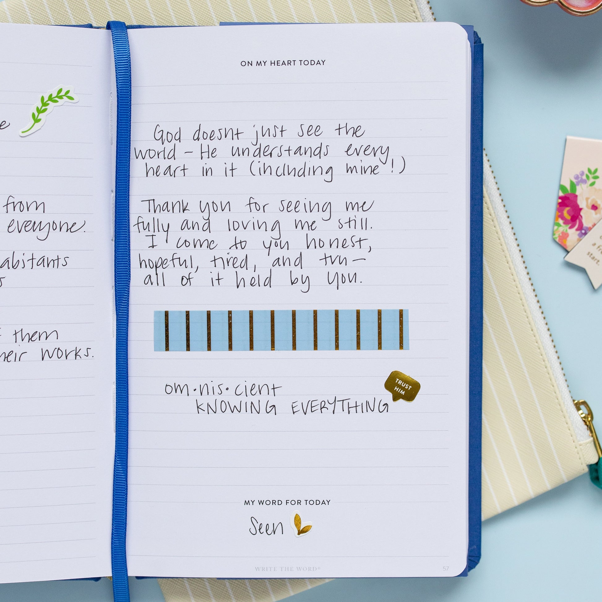 - In each two-page spread, you'll have space to choose a word for the day and journal a prayer, what the day's reading is teaching you, or whatever else is on your heart
